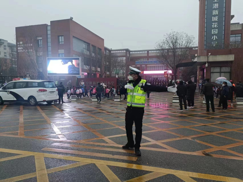 每当到上、下学的时间,有这样一群人,他们准时出现在校园周边,或身着警服,或头戴钢盔,或手握钢叉,或身穿马甲......他们,是警察,是学校领导、老师、保安、家长志愿者,也是新区校园的“护学岗”人员,他们携手筑起安全屏障,守护着上、下学时段的学生安全。