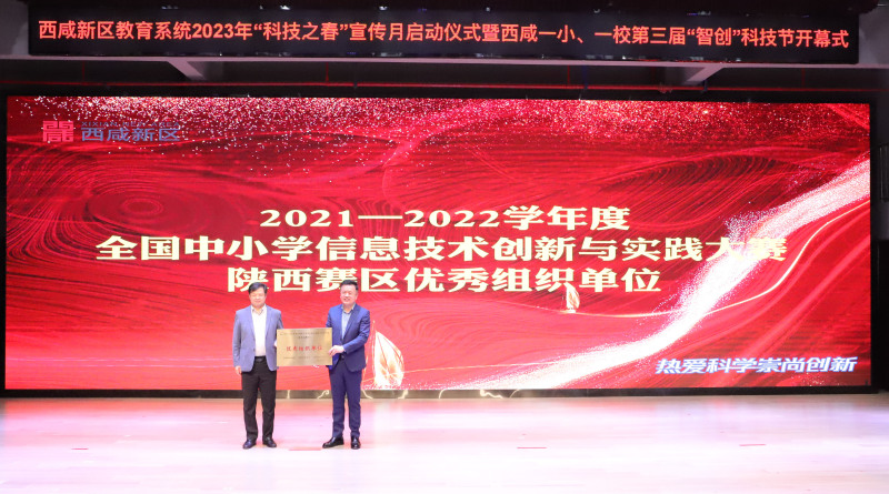 本次活动表彰了2022年度西安市科技教育特色学校、2021-2022学年度全国中小学信息技术创新与实践大赛陕西赛区优秀组织学校及西安市第37届青少年科技创新大赛优秀组织学校。