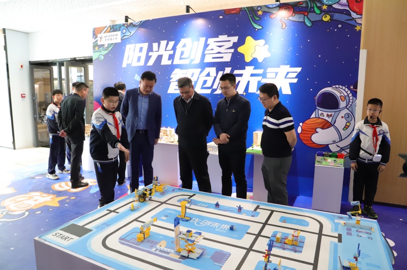 随后,与会领导和嘉宾参观了沣东新城阳光城小学、西咸一初和西咸一小等学校优秀科创作品展。小小讲解员对科创作品的详细介绍让大家看到了同学们身上蕴藏的科技潜能和表现出来的科学素养,3D打印、编程、人工智能等一系列科创社团展现了同学们之间的分工明确、精诚合作,也展现了编程技术下机器人应对赛场突发状况的从容不迫,让大家看到了一群充满生机与活力的未来科技之星。