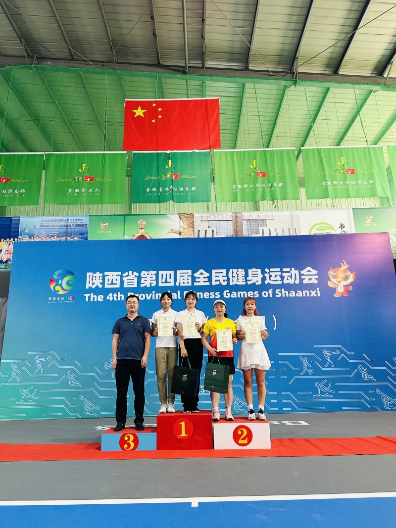 7月23日,陕西省第四届全民健身运动会网球比赛(社会组)在宝鸡高新区金徽网球馆落幕。来自全省各市(区)的13支代表队、120余人在(A组)混合双打、男子单打、女子单打、女子双打、男子双打,(B组)女子双打、男子双打、混合双打八个组别中展开同场竞技。经过4天232场的激烈角逐,西咸新区教育体育局的杜亚玲同志荣获A组单打冠军、女子双打亚军、混合双打亚军。