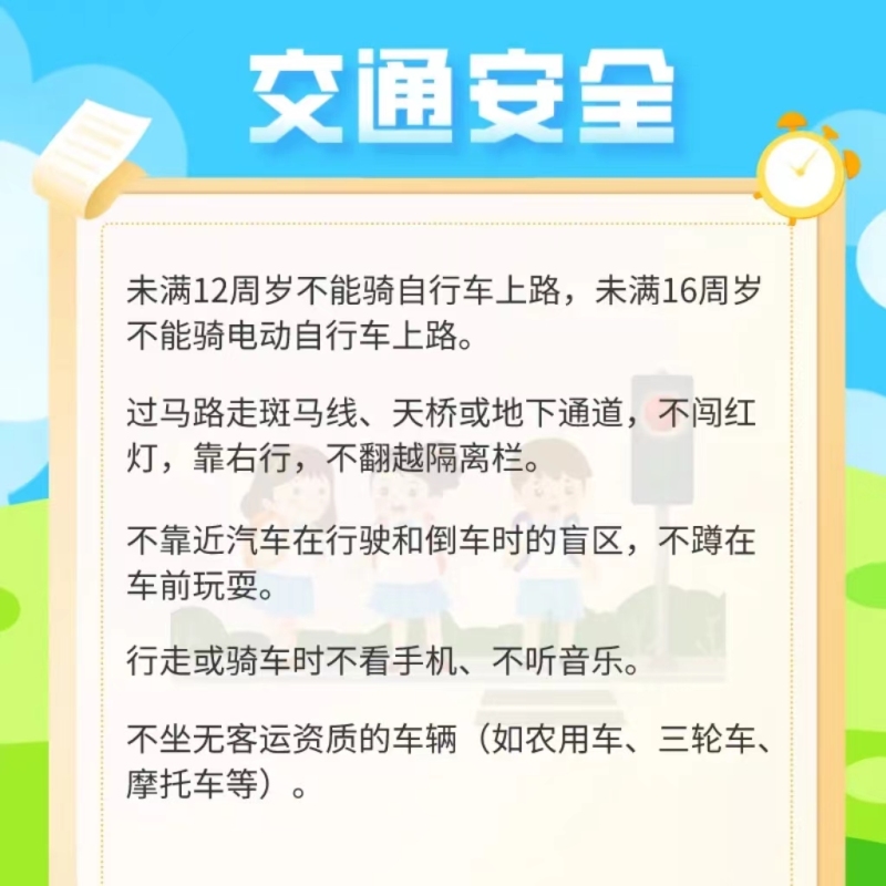 安全是孩子发展成长的前提和保障,开学季,安全教育这门“必修课”要上好。下面这份“开学安全教育手册”涵盖了交通、防溺水、饮食等方面内容,请家长督促孩子牢记在心。
