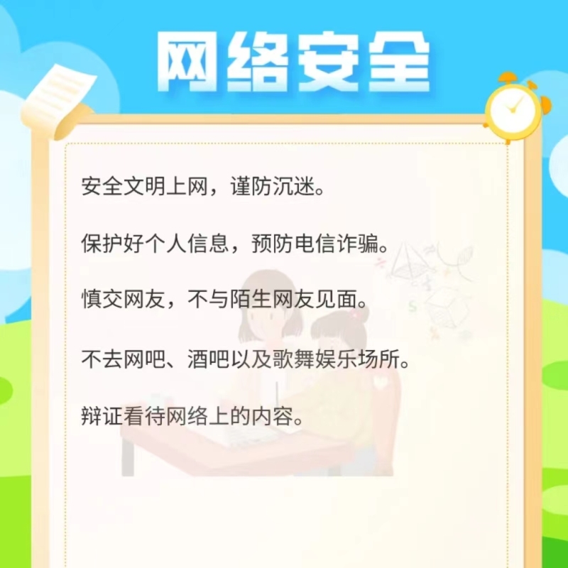 请家长们帮助孩子放平心态,引导孩子逐步增加学习或阅读时间,跟孩子一起检查假期作业的完成情况,及时查漏补缺;帮助孩子循序渐进地调整作息时间,作息时间尽量与学校一致,以缩短开学后的不适应期;督促孩子规律饮食,为顺利返校做好准备。