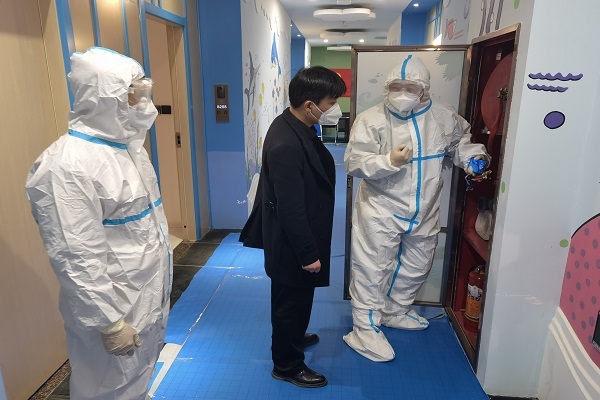 精准研判,迅速部署。紧盯节点任务,第一时间召开工作推进会,与新区防疫办人员组成联合工作专班,成立六个检查组,通过清洁区域实地检查、污染区域“云检查”的方式对全区46家隔离酒店逐一摸排,并紧盯重点岗位人员缺失、封闭管理疏散难度增大、设施故障无法及时维修等现实问题,按照“业务水平高、身体素质棒、协调沟通强”的标准,迅速遴选一批业务骨干,全部进驻辖区隔离酒店,确保防疫防火各项任务走深走实、落实落地。