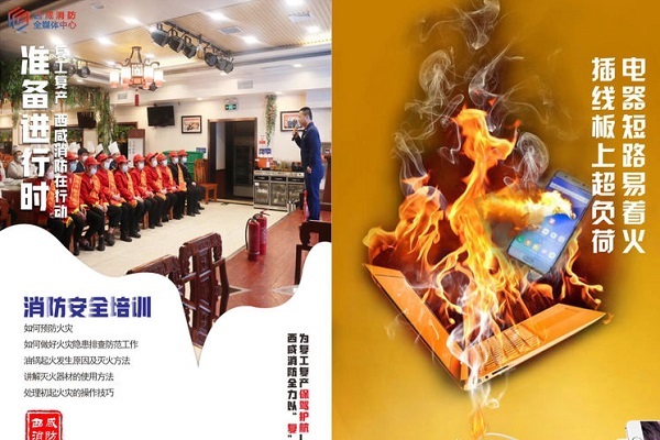 百花齐放,覆盖宣传促参与。策划拍摄电动自行车消防安全、复工复产消防常识系列短视频,制作主题科普宣传海报,在各宣传平台开展集中“覆盖式”宣传。联合主流媒体,对疫情防控各项工作进行“深入式”多角度报道,树立队伍形象,诠释“火焰蓝”为民本色。利用“全民消防学习云平台”在线学习功能,发动社会单位组织消防知识学习竞赛,以赛促学、以学促用,提升企业员工消防知晓率、参与度。