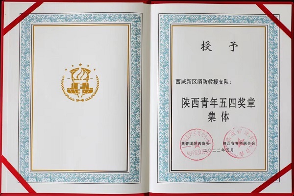 近日,经共青团陕西省委、陕西省青联决定,授予西咸新区消防救援支队 “陕西青年五四奖章集体”荣誉称号。