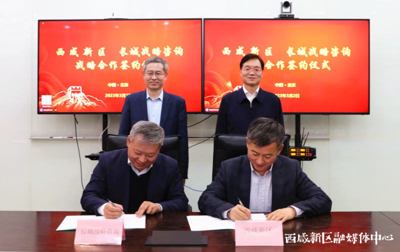 3月2日上午,西咸新区在北京与长城战略咨询签署战略合作协议,携手开展智库服务战略合作,打造集智库研究支撑、秦创原品牌提升和产业促进等多元功能为一体的服务体系,为新区创新驱动高质量发展提供智力服务。