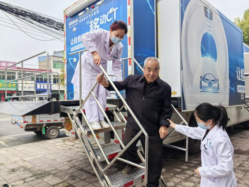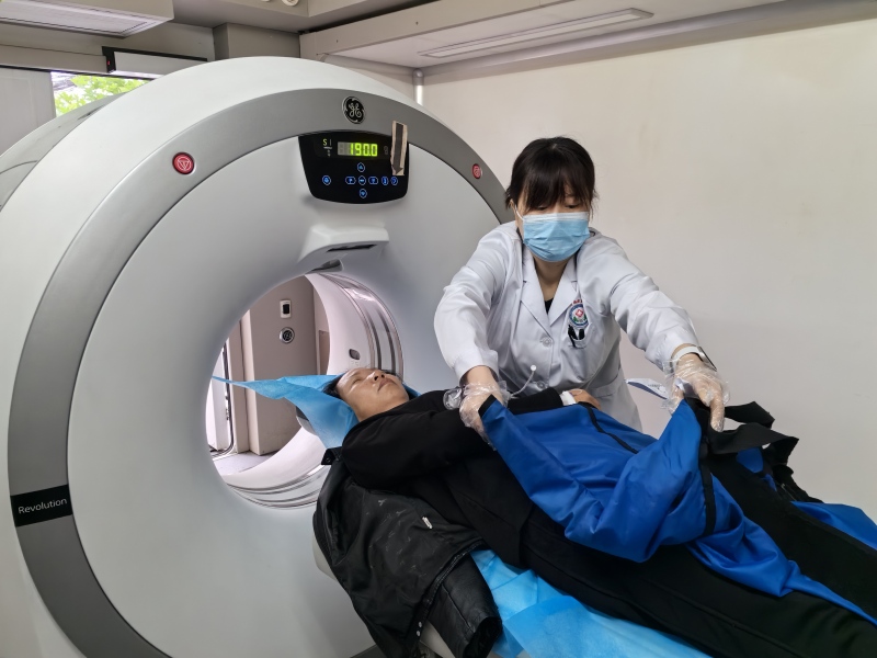 “大王街道的群众注意了!给咱们做CT检查的医疗设备专用车已经开到大王中心卫生院门口了,请大家一定要按照顺序,有秩序地等候和检查。”10月11日,一辆载着各项检查设备,车身长约12米、宽2.5米、高4米,价值650余万元的移动式GE16排CT“航母”,缓缓地驶入大王中心卫生院。
