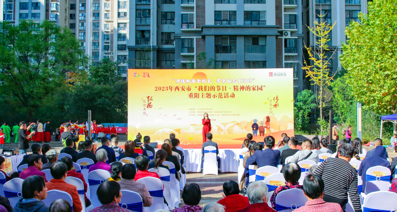 10月20日,在九九重阳节来临之际,由中共西安市委文明办指导,西咸新区宣传文旅局、西咸新区党工委文明办主办,西咸新区沣西新城党政办公室、钓台街道办事处承办的2023年西安市“我们的节日·精神的家园”重阳主题示范活动,在沣西新城康定和园社区中心广场举办。