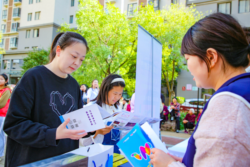 在文创展示区,丝路欢乐世界准备了详细的项目介绍和实惠的体验政策。一群陪爷爷奶奶来参加活动的孩子们围在一起,认真研究。吴大爷的小孙子说,“活动的志愿服务很丰富,丝路欢乐世界也感觉很棒,我还在义务理发摊位剪了头发。”