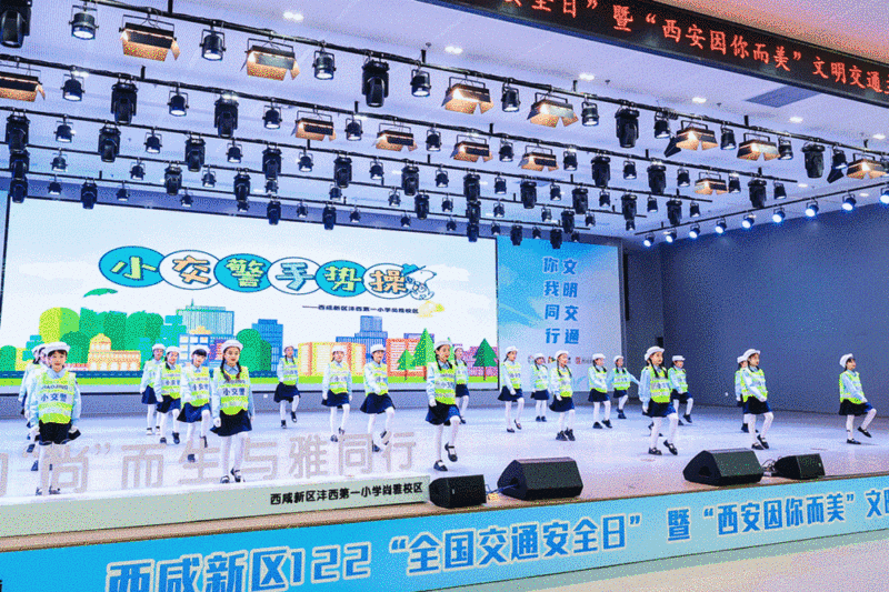 活动中,西咸新区沣西第一小学的孩子们带来“小交警手势操”,新区交警、志愿者、公交司机和学生代表共同宣读了《遵守交通法规 从我做起》倡议书,市公安局西咸新区分局交通警察大队执勤三中队带来声情并茂的《交通安全歌》等节目,通过富有内涵的群众化、艺术化表达方式,倡导“自律、包容、礼让、文明”的现代文明交通理念。
