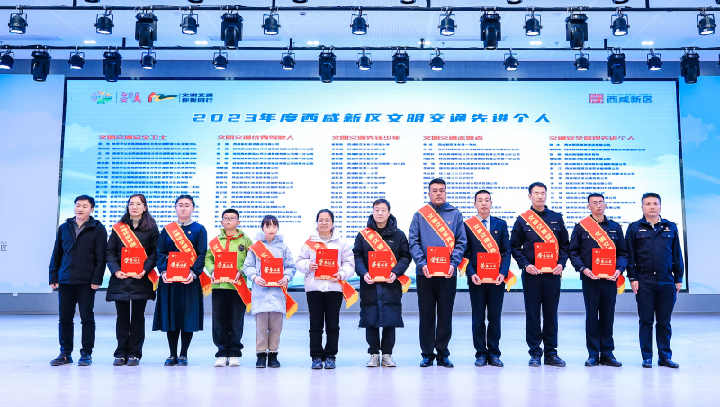 现场对2023年度西咸新区文明交通示范集体、先进个人代表进行了表彰。