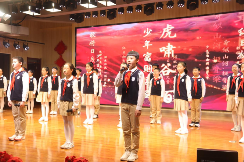 在沣东新城高新学校梦想剧场内,高昂的出旗曲奏响,旗手高举少先队队旗,步伐矫健,带领着整齐列队的少先队员们出场。伴随着嘹亮的少年先锋队队歌,活动拉开了序幕。