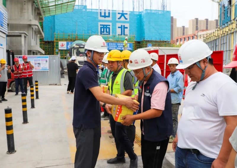 为守护户外劳动者、新业态新就业群体在烈日下的坚守与付出,近期能源金贸区园办工会开展“四季守望 情暖西咸”2024年“夏送清凉”慰问活动,为坚守一线的工作人员送去关爱慰问。园办工会为坚守在高温一线的建筑工人、环卫工人、保安及综合行政执法队员送去清凉茶饮、毛巾、防晒用品等清凉解暑物资。