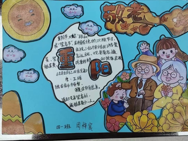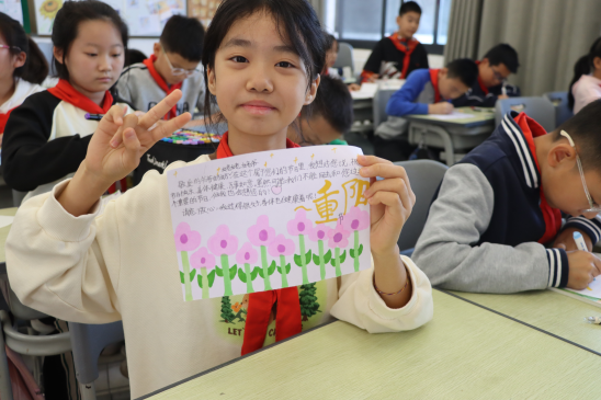 学校依据学生的身心特点,精心开展了重阳节系列活动。对于一、二年级的学生而言,他们选择了给长辈捶背、洗脚、端水以及陪长辈散步等方式,以此来传递自己的孝心。三年级的孩子们则拿起笔,写下自己内心深处想对长辈诉说的心里话,或是送上真挚的祝福语。而四年级的同学们充分发挥自己的创意和动手能力,通过画一画、剪一剪的方式,制作出精美的手抄报和手工作品。在这个创作的过程中,他们不仅锻炼了动手和动脑能力,还进一步了解并传承了中华优秀传统文化。