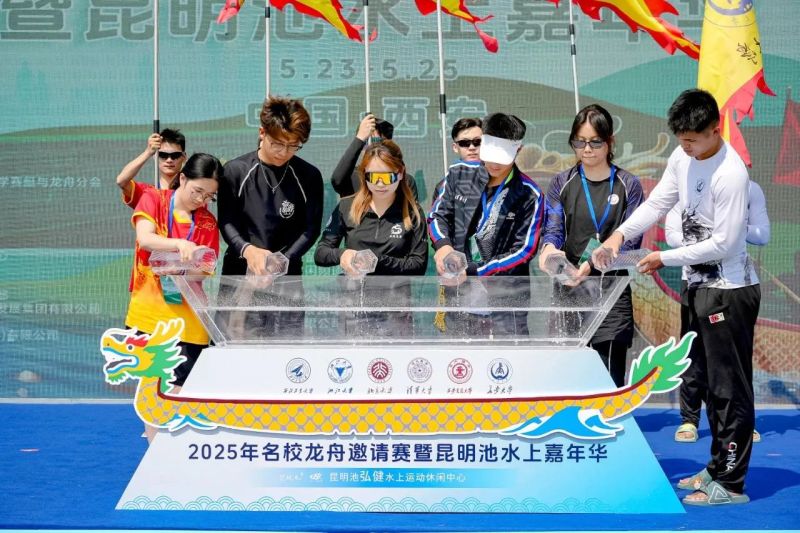 活动开始前,西安交通大学舞龙队以腾跃欢舞点燃现场,灵动龙身勾勒端午传统图景。六校学子代表将各自校园的水汇集在一起,既象征高校文脉交融,更以“保护一泓清水”公益倡议传递节水理念,让传统赛事焕发时代温度。