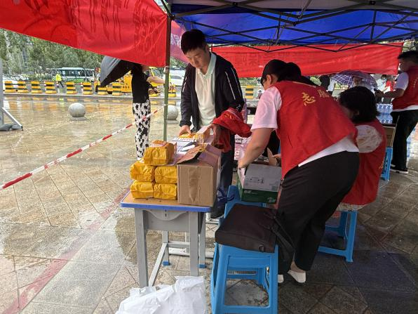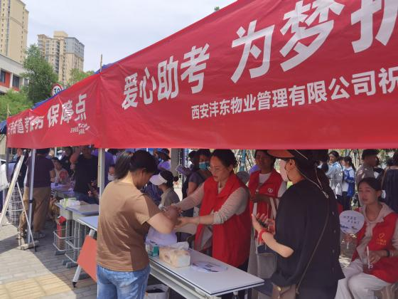 高考首日清晨,一场大雨为考生赴考增添不便。志愿者们主动向过往考生及家长递送纸巾、矿泉水,西咸新区轨道公司志愿者手持向日葵和备用文具,为匆忙赶到的考生送上祝福:“同学加油!向日葵寓意一举夺魁,祝你考出好成绩!”6月8日气温回升,志愿者们顶着烈日为候考家长递上清凉扇和饮用水,同步提醒防暑注意事项。各服务点预先配备的藿香正气水、风油精等药品,为应对突发情况做好充分准备。