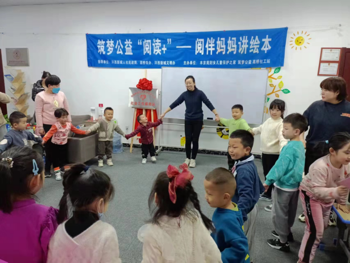 沣西新城筑梦公益服务中心开展的“阅伴妈妈讲绘本 安全相伴儿童行”志愿服务项目,依托高桥、王寺、上林、渭城等街道新时代文明实践所,针对困境和留守儿童家庭早教环境缺失、亲子交流不足等问题,从全职妈妈中招募志愿者,在绘本阅读技巧、亲子共读、心灵沟通等方面进行培训,通过“柔性”力量推动家庭参与新时代文明实践,实现儿童全面健康成长。