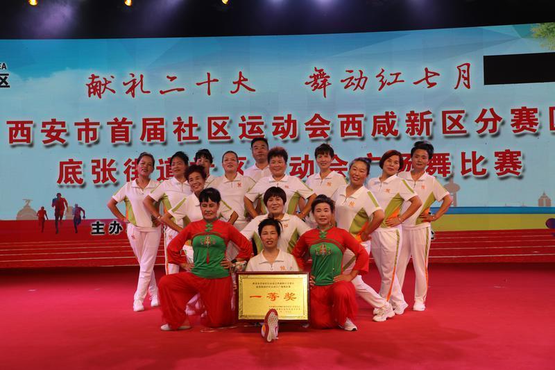 7月28日傍晚,在西咸新区空港新城城市中心公园,西安市首届社区运动会西咸新区分赛区底张街道社区运动会广场舞比赛如火如荼地进行着。