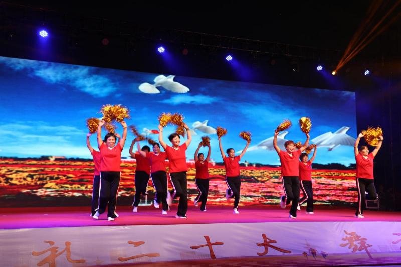 比赛现场,来自底张街道社区的10支广场舞队伍参与竞技,她们身着盛装,在《颂歌献给党》广场舞中拉开帷幕,整齐一致的舞蹈婀娜多姿、激情澎湃。《中华一家亲》《最美西藏》《我爱美丽的中国》《十送红军》等9支舞蹈节目轮番上演,队员们尽情挥洒汗水,踏着热情四射的舞步,参赛队中不仅有村干部、学校老师,也有社会群众及新时代文明实践志愿者,诠释了全民参与、共同锻炼的理念。精彩纷呈的节目让台下观众掌声不断,欢呼连连。