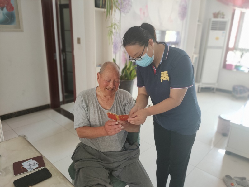 于是,网格员闫飞到王大爷家说明情况,大爷很高兴,一直说着政府真好,也很感谢网格员闫飞的关心,为他进行帮代办,让他省心、少跑路。根据代办需要,大爷签下委托书,闫飞收集齐王大爷退伍证明等资料,便去党群服务中心领取王大爷个人档案,在柜台进行办理。