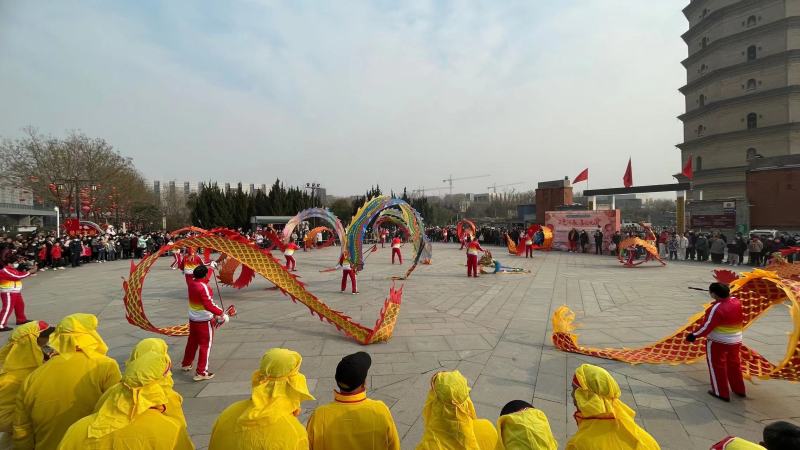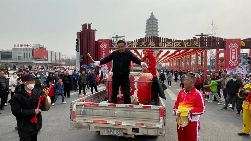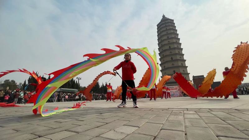 崇文塔下,锣鼓喧天、红旗招展,一条条节日舞龙,在充满喜庆祥和的鼓点声中,昂首摆尾,蜿蜒游走,旋转翻腾,激起活动现场浓烈的欢快、喜庆氛围。花样迭出的扇子舞,目不暇接的T台秀,热热闹闹的秧歌舞,充满活力的广场舞,观众们在掌声和欢呼声中感受着浓浓的“年味儿”。传统文化展演,更是让群众通过“看得见摸得着”的体验,近距离感受着传统文化的魅力。
