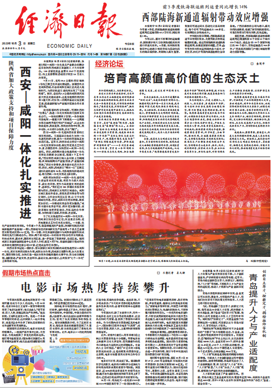 今天,《经济日报》头版头条刊发报道《陕西省加大政策支持和项目保障力度西安-咸阳一体化扎实推进》,全文如下。