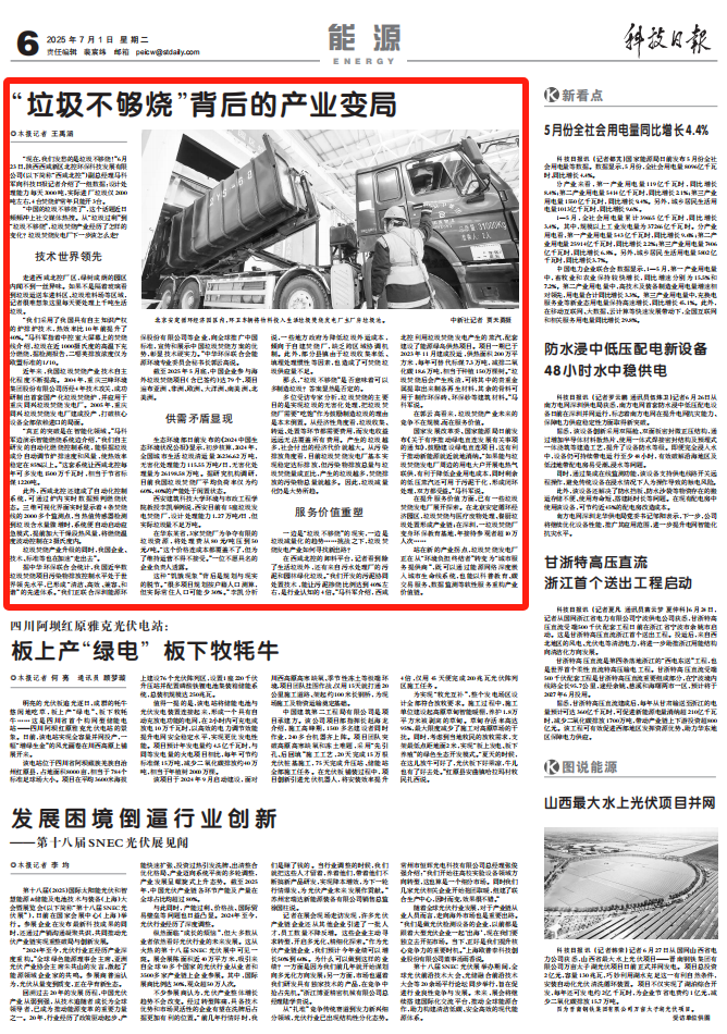 7月1日,科技日报刊发《“垃圾不够烧”背后的产业变局》聚焦西咸新区入区企业创新实践,积极探索从传统“废物处理”模式向“城市综合服务”的价值跃迁,全文如下。