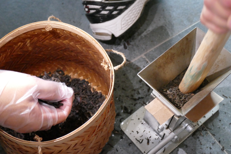 传统茯茶制作技艺包含拣茶、剁茶、筛分、熬茶汤、打吊、炒茶、灌封、捶茶、堆封、发花、陈化等数十道工序。