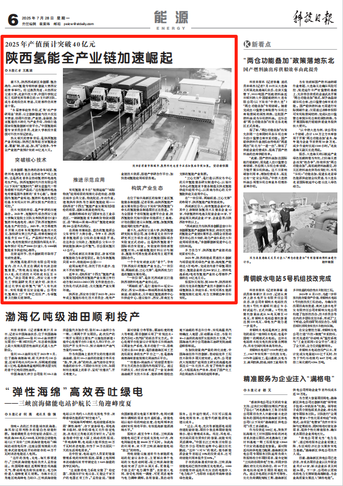 今天,《科技日报》发布《陕西氢能全产业链加速崛起》,关注陕西省氢能产业发展,聚焦西咸新区作为秦创原总窗口通过打造完整氢能全产业链助力产业体系壮大的探索实践。