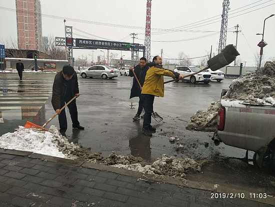 此次除雪中,沣东新城出动人员共2000余人,除雪车辆35辆,各类除雪铲1700余把,手扶式推雪铲10把,装载机3辆。