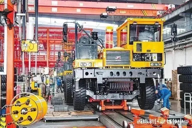 一辆辆近4米高的自卸车,灯光闪烁,一字排开。每12分钟,就有这样一台“身材魁梧”的产品下线,从陕西省西咸新区驶出,发往世界各地。