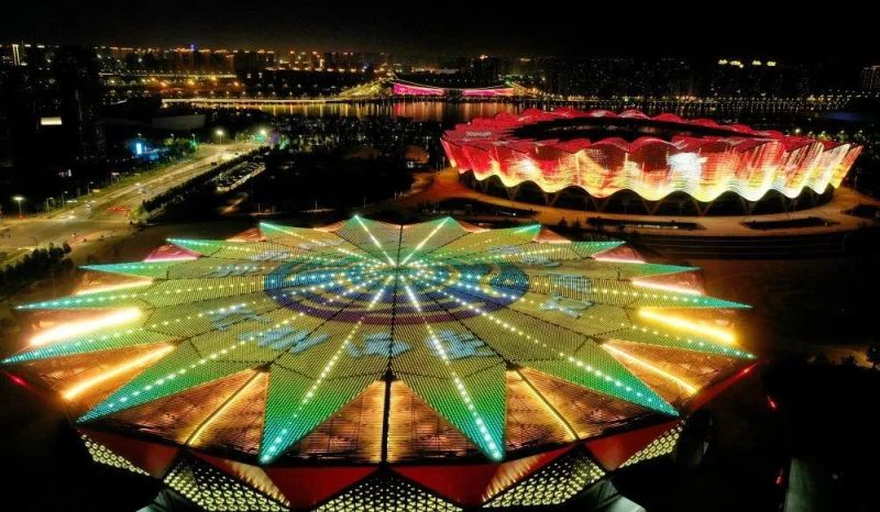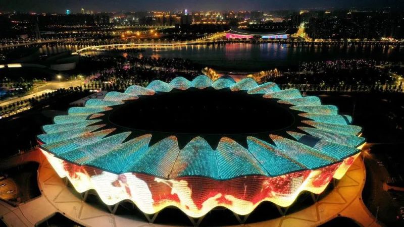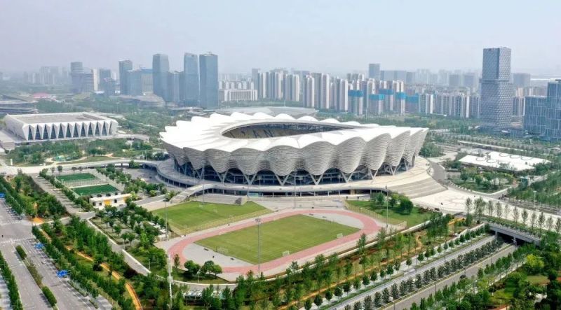 位于西安国际港务区的西安奥体中心(4月26日摄,无人机照片)。新华社记者 刘潇 摄