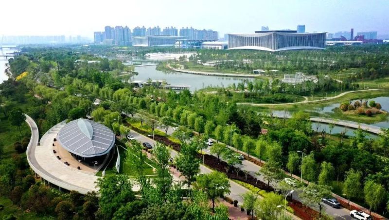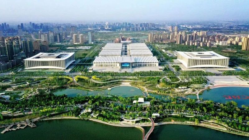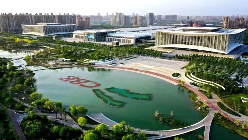 位于西安浐灞生态区的西安国际会展中心(4月16日摄,无人机照片)。新华社记者 刘潇 摄