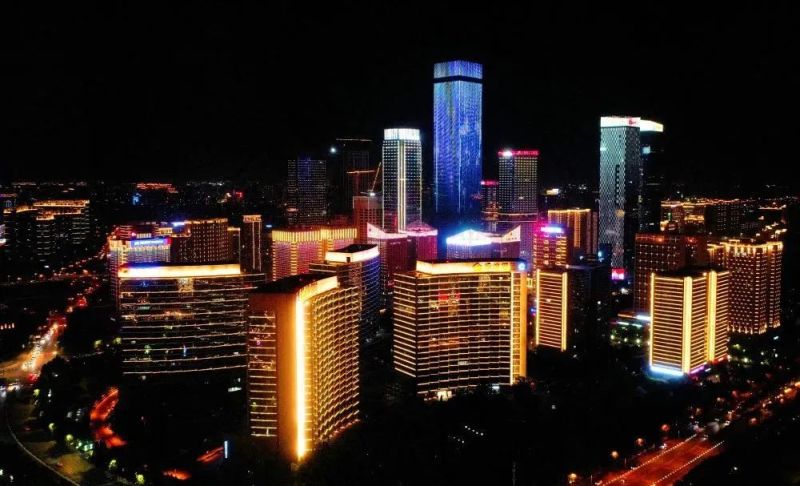 西安高新区都市之门区域夜景(4月30日摄,无人机照片)。新华社记者 刘潇 摄