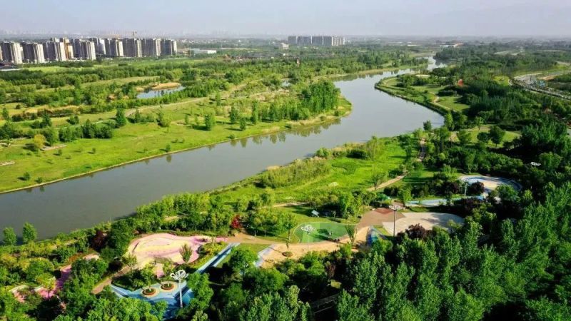 西咸新区沣河两岸景象(4月29日摄,无人机照片)。新华社记者 刘潇 摄