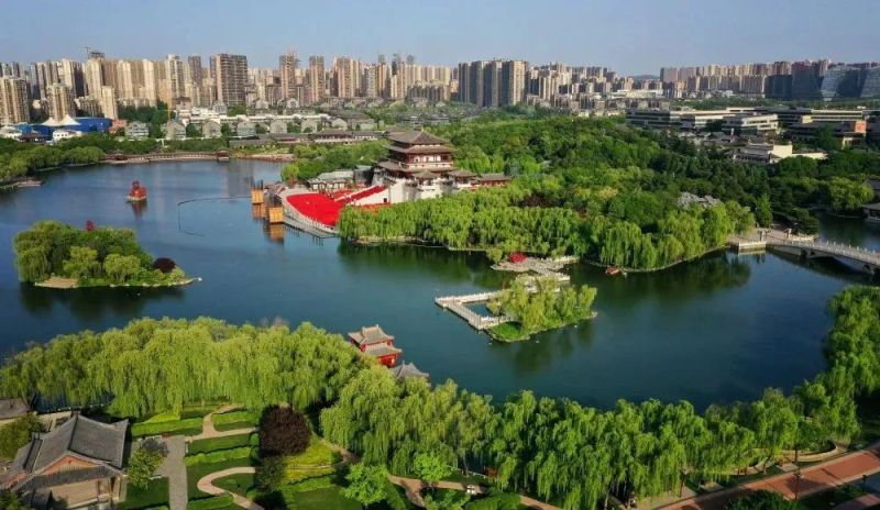 西安大唐芙蓉园(4月25日摄,无人机照片)。新华社记者 刘潇 摄