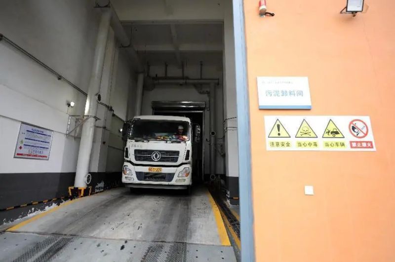 “我们这个污泥处置厂,从污泥卸料至污泥接收仓,到输送至污泥干化车间两次高温去水,再到热解气化车间塑形、消杀,直至变成环保“再生料”排出,均在完全封闭的空间里进行,外面看不到。现在打开的这个门,是专门用于污泥卸料……”该厂区污泥项目总工程师赵浩,指着厂区内的一个个“连体房”解释说。