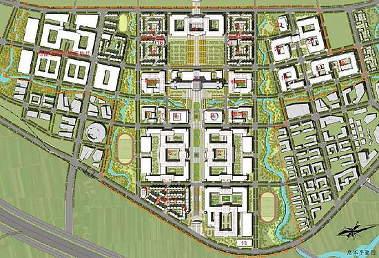 老交大的建筑多用红砖,因此,为了传承百年交大的建筑文脉,创新港科研教育板块的建筑以砖红色作为最主要的色彩,同时辅以土黄色和赭石色,打造古朴厚重、典雅大气的校园建筑。