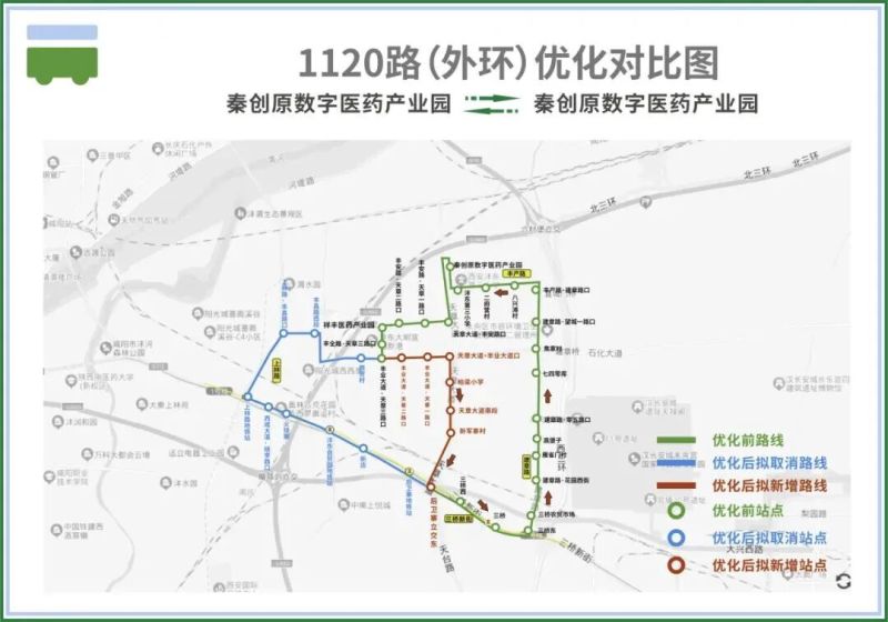 取消站点:后卫寨地铁站、新店、沣东自贸园地铁站、火烧寨、世纪大道·奥兴路口、上林路地铁站、上林路·丰昌路口、丰昌路西段、石化大道·科贸一路口、西贺村