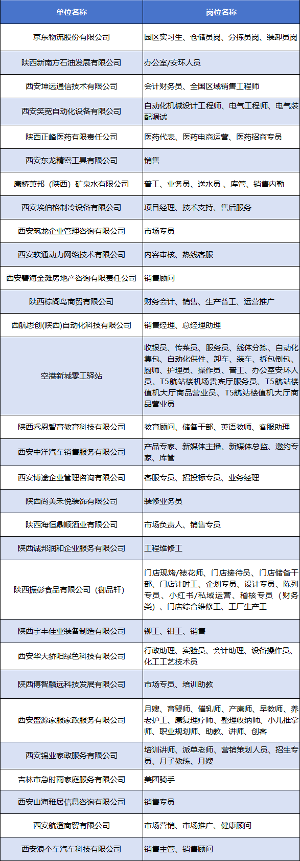招聘岗位及企业名单