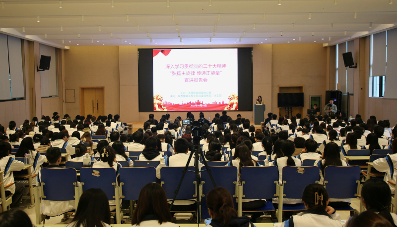为贯彻落实习近平总书记历次来陕考察重要讲话重要指示精神,推动习近平新时代中国特色社会主义思想深入人心、落地生根,10月10日下午,沣西新城“乘沣破浪 只争朝西”宣讲团赴陕西服装工程学院,开展“深入学习贯彻党的二十大精神 弘扬主旋律 传递正能量”主题宣讲。田伟、单子浈两名宣讲员以及陕西服装工程学院党委宣传部副部长菅建伟围绕党的二十大精神、中国共产党人精神谱系中的陕西元素,结合自身的工作实际和感悟进行宣讲。陕西服装工程学院党委宣传部、学工部有关领导及学生代表300余人参加本次宣讲报告会。