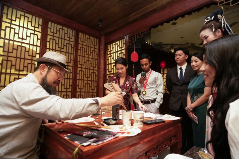 在9月27日举办的陕西省庆祝中华人民共和国成立74周年招待会上,外国驻陕领事机构官员,在陕外国商会、企业、专家和留学生代表,港澳台同胞代表及省内相关单位负责同志约200余人应邀出席招待会。活动集茯茶、书法、非遗表演等中国文化元素为一体,受到了与会领导和中外嘉宾的高度认可和赞扬。