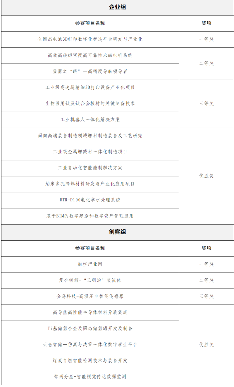 本次大赛共选出企业组一、二、三等奖及优胜奖12个,创客组一、二、三等奖及优胜奖8个,并授予西安外事学院“优秀组织奖”。