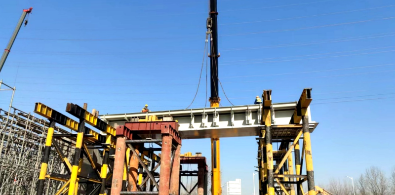 阿房一路项目绕城高速跨线桥首件钢箱梁架设完成