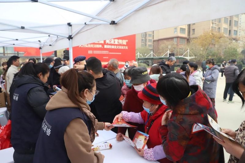 “宪法是国家的根本大法,是治国安邦的总章程,我们要大力弘扬宪法精神、维护宪法权威。”12月5日,在秦汉新城兰池佳苑广场,工作人员正在向群众宣传宪法知识。