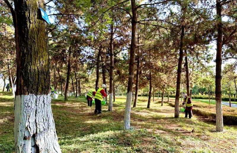 为扎实做好秋冬季绿化养护管理,提高苗木抗寒性和抗虫性,保障园林绿化树木安全越冬,秦汉新城综合行政执法支队10月初开始推进树木涂白工作,统一为它们穿上“秋裤”。