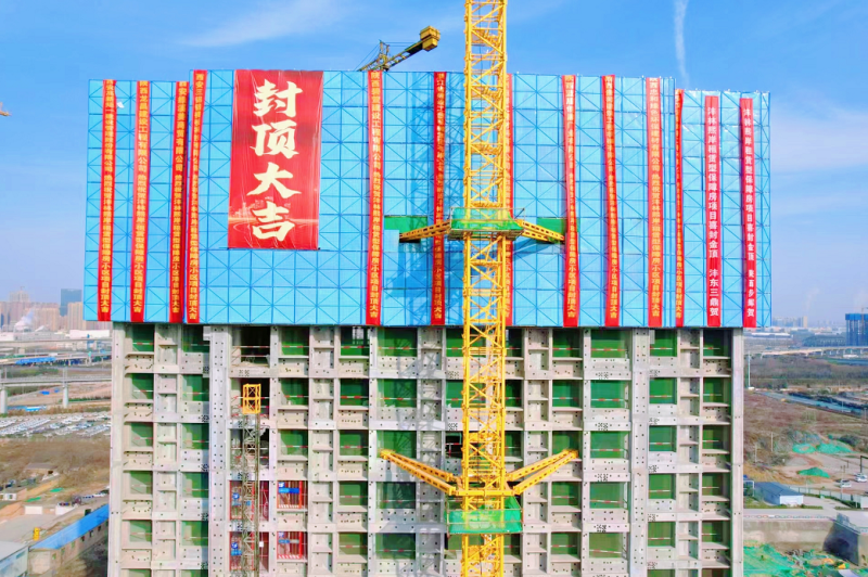 西咸新区沣东新城租赁型保障房项目沣林熙岸一期5栋住宅楼主体结构全面封顶