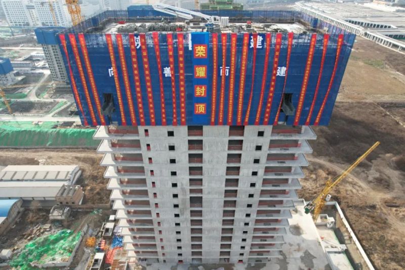 "项目于2021年12月开工建设,目前主体结构已全面封顶,正在进行主体二次结构及幕墙施工。"项目相关负责人表示,项目预计2024年12月底整体完工。