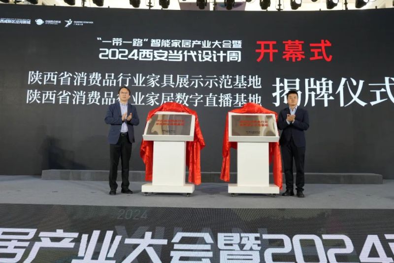 开幕式上,清华产投汇秘书长刘丹丹为清华大学产投汇理事会西安联络中心授牌。陕西省工信厅副厅长刘波,泾河新城党委委员、管委会副主任吉炜涛为陕西省消费品行业家居数字直播基地及陕西省消费品行业家具展示示范基地揭牌。