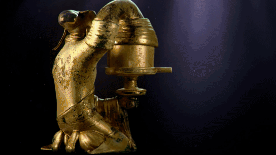 此外,这盏灯通体鎏金,鎏金是把液态金汞剂涂于铜银等器物表面,再经加热烘烤令汞挥发,使金均匀地附着器物表面的工艺。铜和金均为反射率较高的贵金属,采用鎏金工艺后,金属表面更平整,光滑度提高,漫反射(是投射在粗糙表面上的光向各个方向反射的现象)减少,镜反射(单向反射)增加,对红橙黄光具有很高的反射率,照明效果更好。